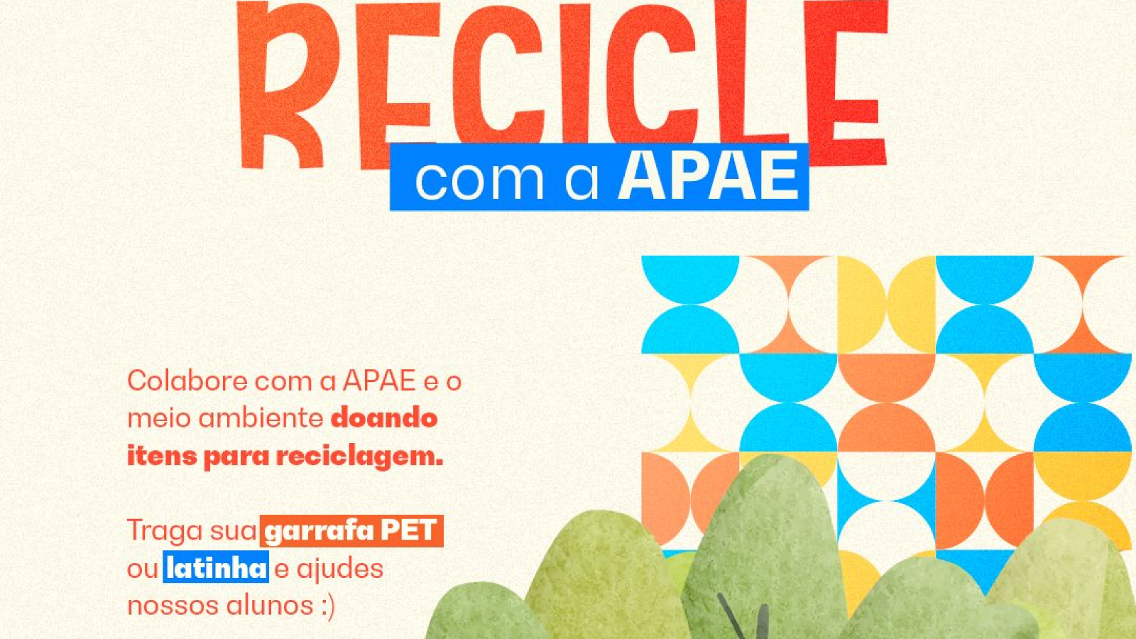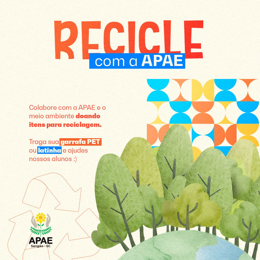 Mostre que você se importa com o meio ambiente e comece a reciclar hoje com APAE. Venha e traga sua garrafa PET ou latinha e ajude a APAE ajude nossos alunos.